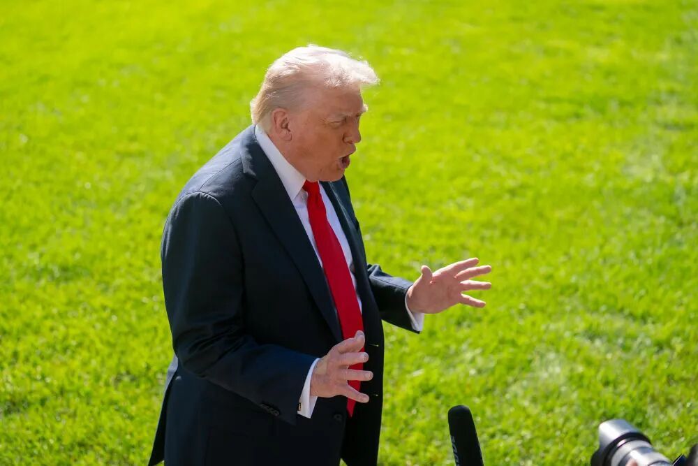 2025年10月5日,在美国首都华盛顿,美国总统特朗普回答记者提问。新华社记者胡友松摄